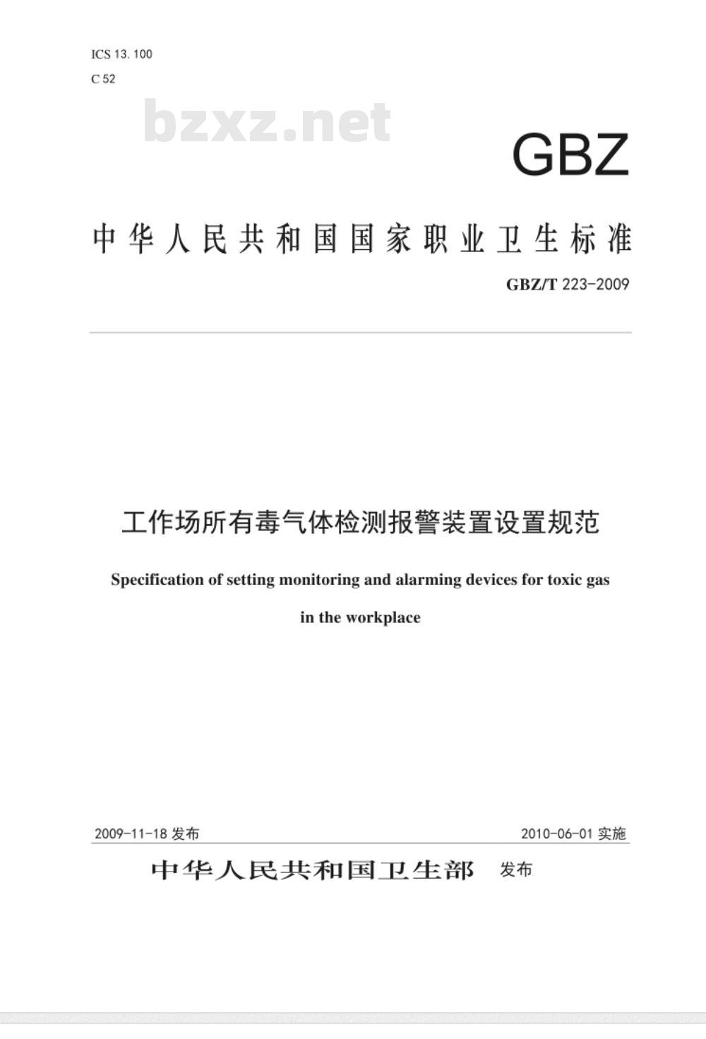 - GBZ/T 223-2009 工作场所有毒气体检测报警装置设置规范