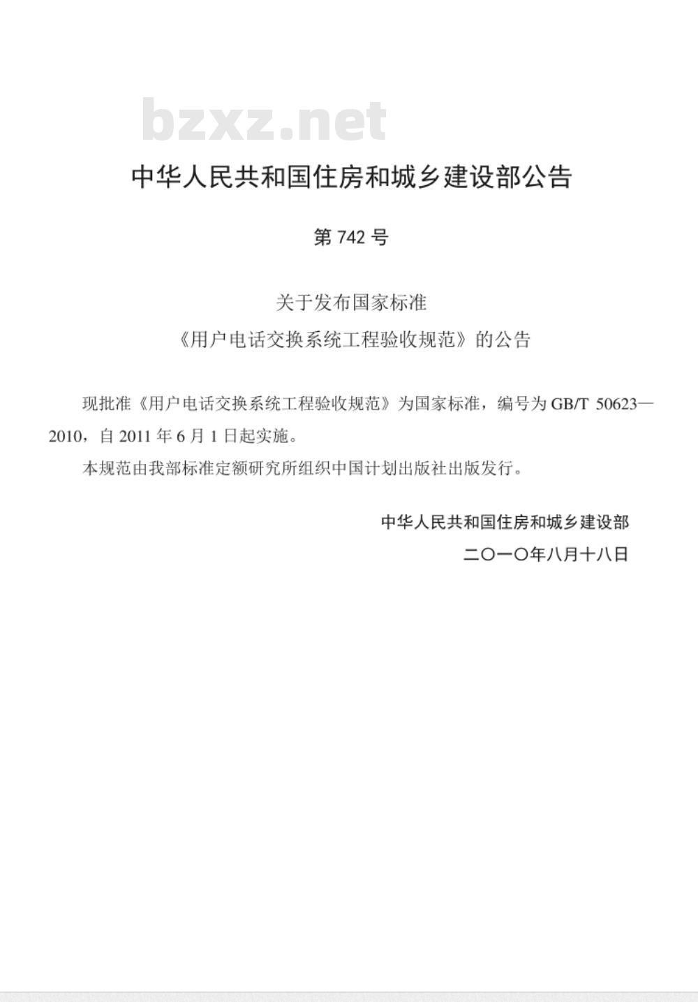 - GB/T 50623-2010 用户电话交换系统工程验收规范