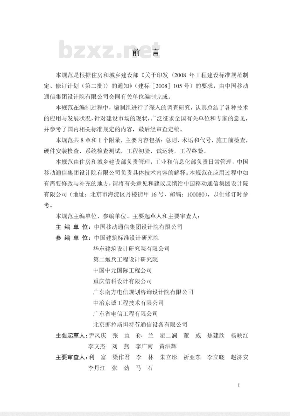 本规范主编单位、参编单位、主要起草人和主要审查人:主编单位:中国移动通信集团设计院有限公司参编单位:中国建筑标准设计研究院华东建筑设计研究院有限公司www.bzxz.net