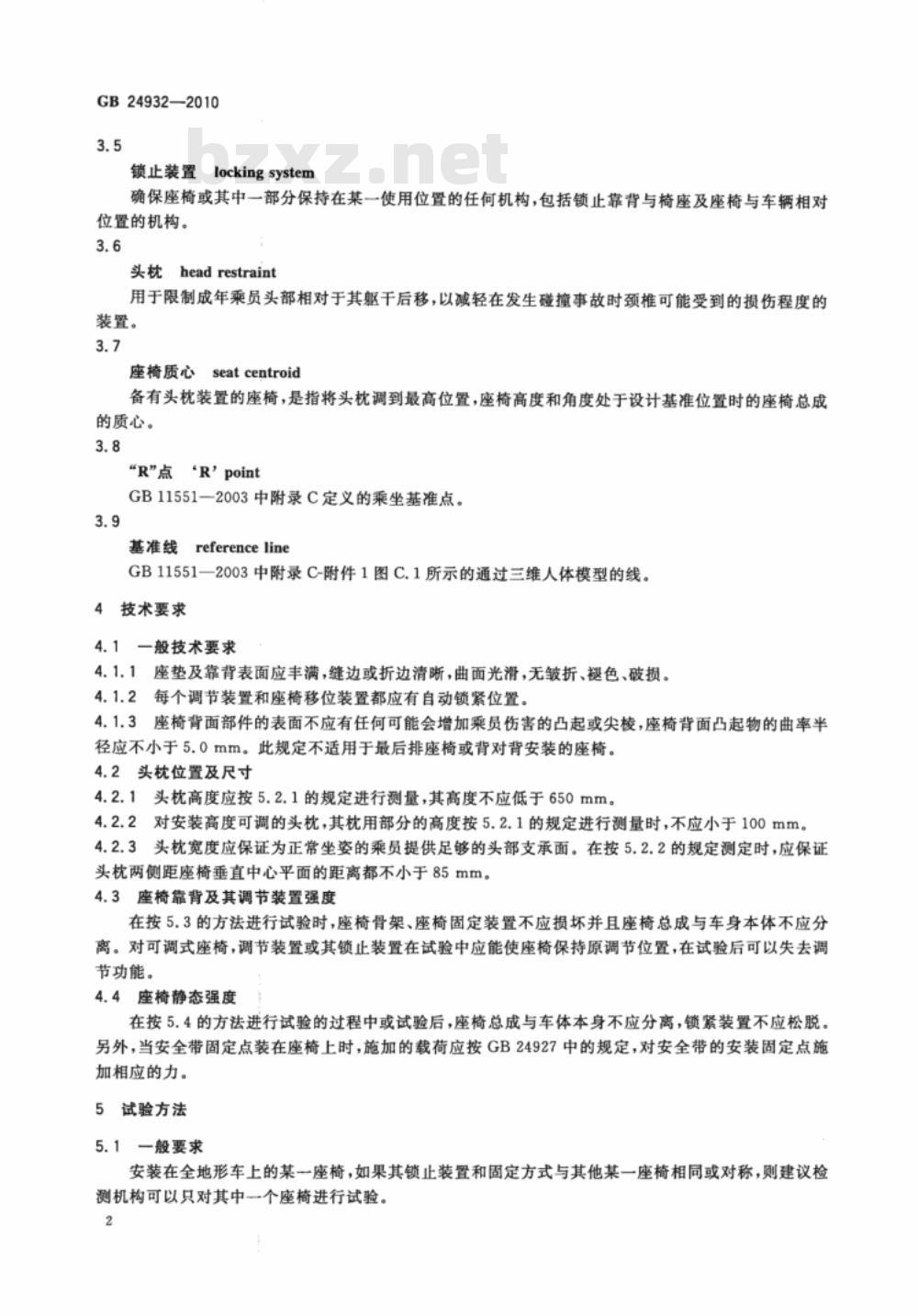 - GB 24932-2010 全地形车座椅、座椅固定及头枕要求