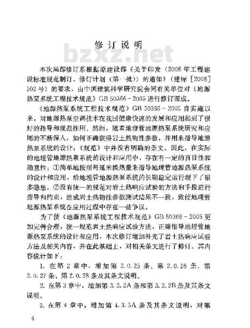 本次局部修订蔡报拓原建设部关于印发(2008年工程建设标准规范制订、修订计划(第批))的通知”(建标2008102号!的要求,由中国建筑科学研究院会同有关单位对距源热来系统工程技术规范0B50.366一2005进行修订而城。地源热泵系统工租技术规范3GB50366一2005自实施以来,对地源热绿空调技术在我因健康快速的发展利扇用起到广报好的指导和规范作用:然而,随者地理管地源热案系统研究和应用的不断深探人,如何正确获得器土热物性参数,并用来指导地源热录系统的设计,《规范中并有明确的祭文。固此,在实际的地埋管地源热录系统的设计和成用,存在有一定的有自性和随意性:简单地接照每延来换热量来指导地理管地谅热绿系统的设计和应用,给地抛埋管地源热泉系矫拍长期隐是运行理下广很多障患。②没有统一的规范对岩士热响成试验的方法利于段进行指导利约策:造战岩十热物性蒸数试继果不一致,致使地埋算地源热黎系统在应用过程中存在一些设。为了使或地源热泵系统工程技术规范G50366一2005更加光合理,统一规范岩士热响应试验方法,正确指导地埋管地源热泵系统的设计和虚用,本次修订增旭补充岩十热响减试鉴法及相关内睿:并在此基础工,对相关条文进行修订:共内容统计如下