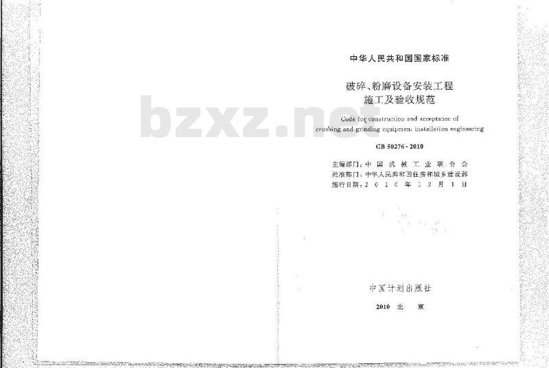 Code for consiructiot and acceptariec ufcrushing and grinding cquipment inslailation engineerirgGB 50276-2010
