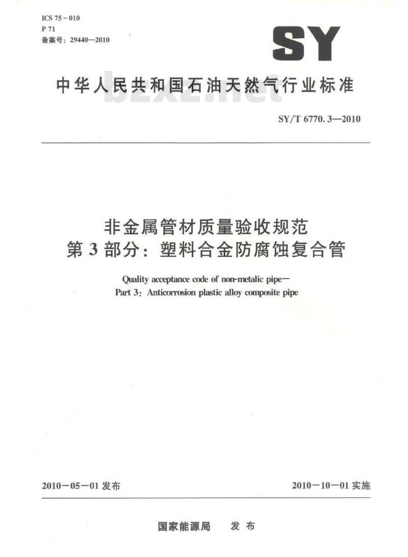 SY/T 6770.3-2010 非金属管材质量验收规范 第3部分:塑料合金防腐蚀复合管 SY/T6770.3-2010