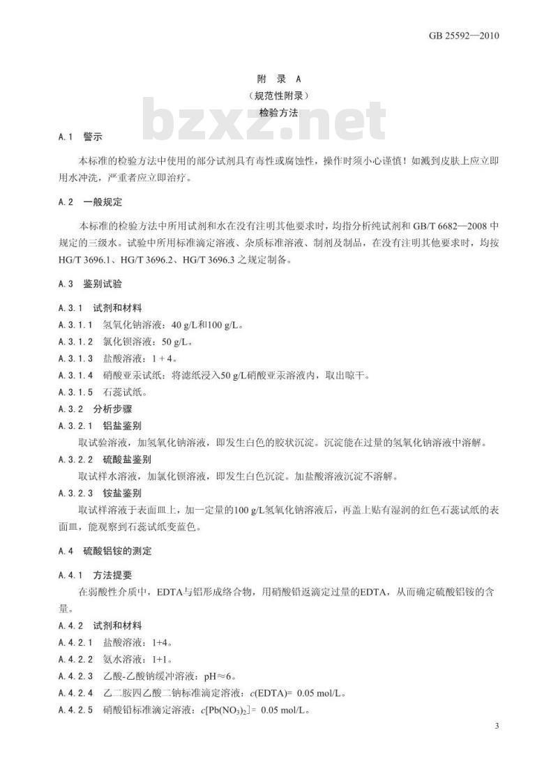 - GB 25592-2010 食品添加剂 硫酸铝铵