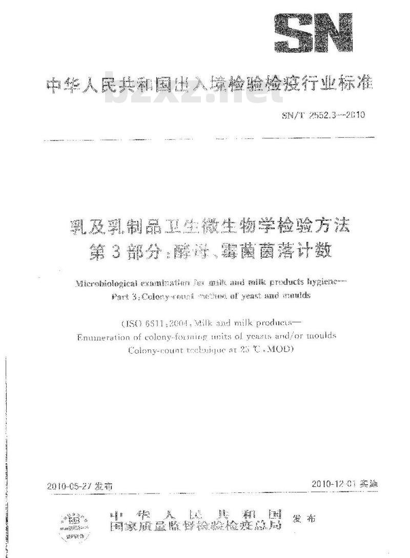 中华人民共和国出人境检验检疫行业标准SN/ 2552.3--2010
