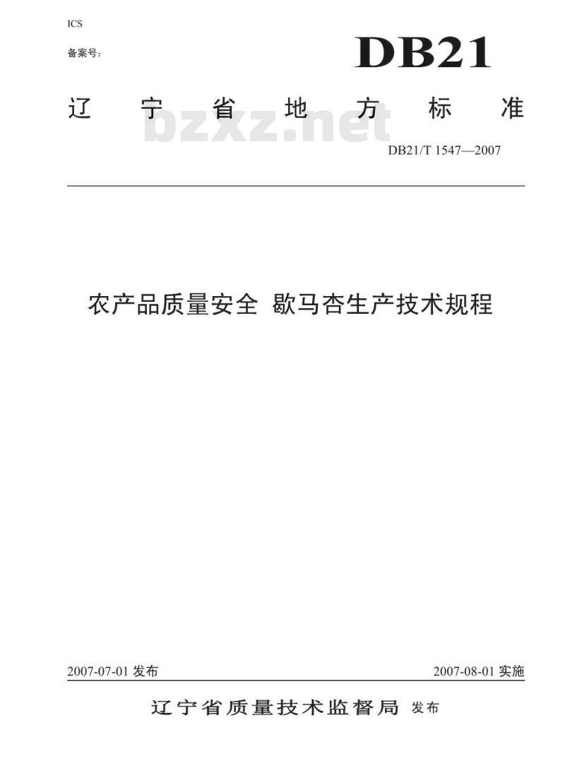 - DB 21T 1547-2007 农产品质量安全 歇马杏生产技术规程