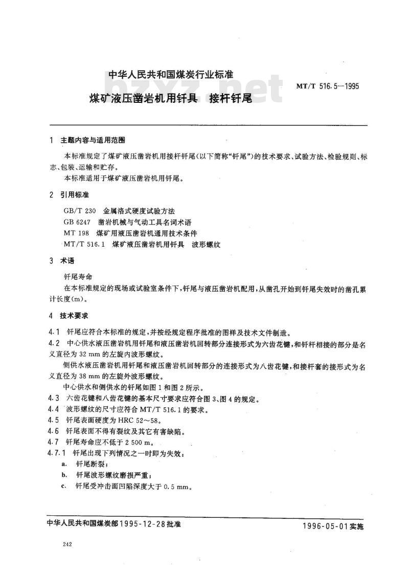 - MT/T 516.5-1995 煤矿液压凿岩机用钎具 接杆钎尾