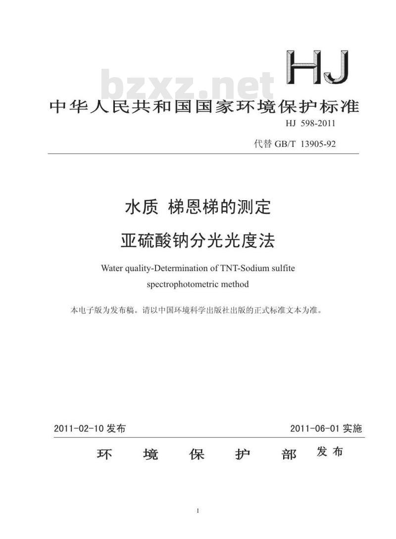 - HJ 598-2011 水质 梯恩梯的测定 亚硫酸钠分光光度法