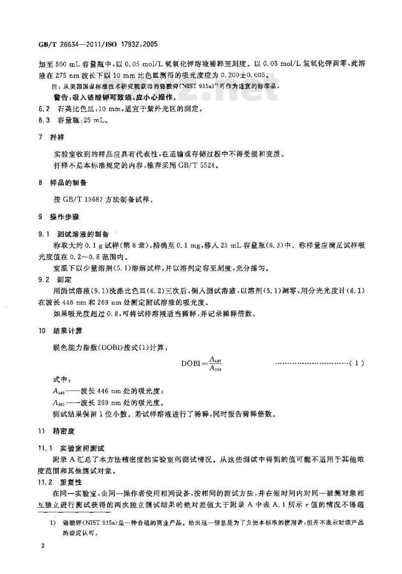 GB/T26634—2011/IS0 179322005脱色能力指数(DOBI)的测定