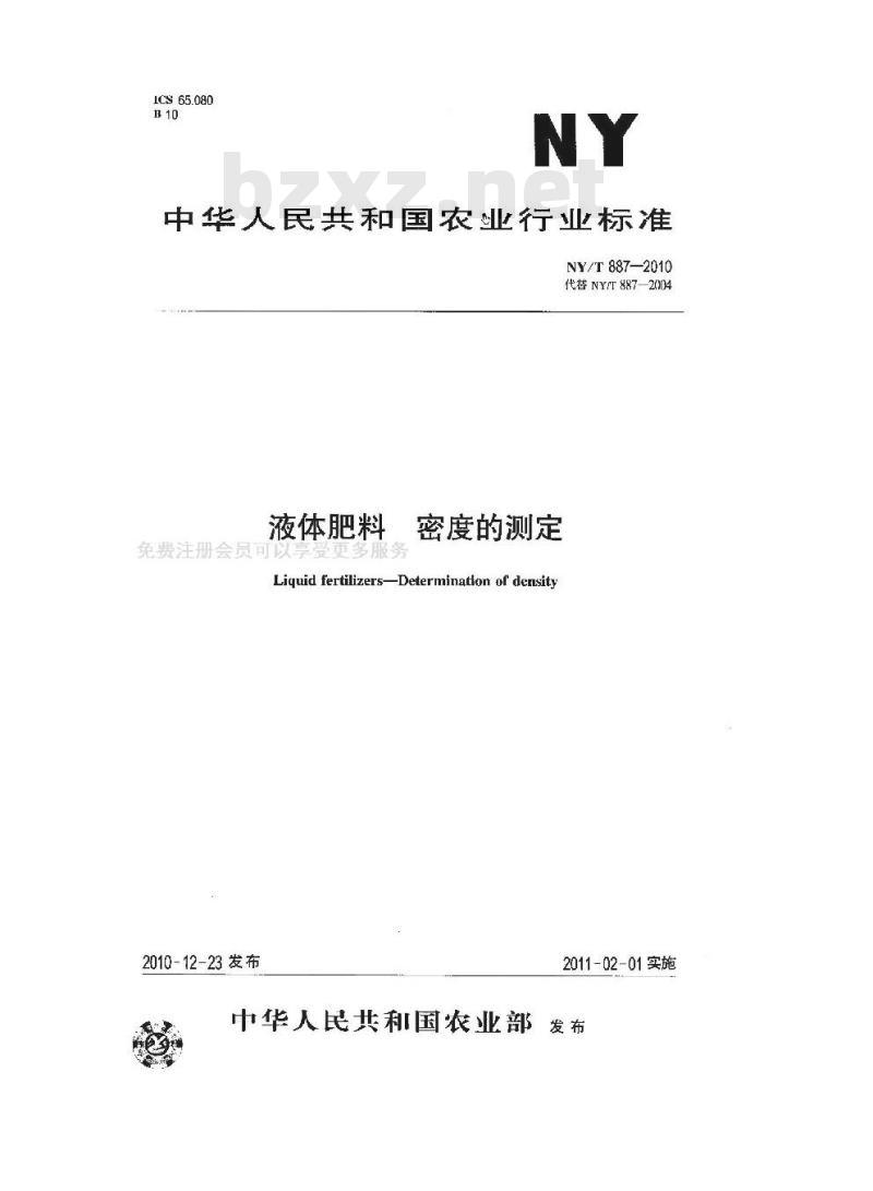 - NY/T 887-2010 液体肥料 密度的测定