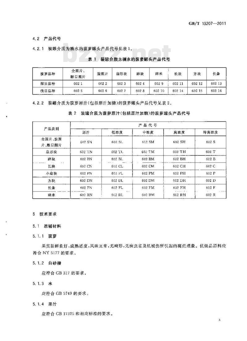 装罐介质为菠萝原汁(包括原汁加糖)的菠萝罐头产品代号见表2。4. 2.2