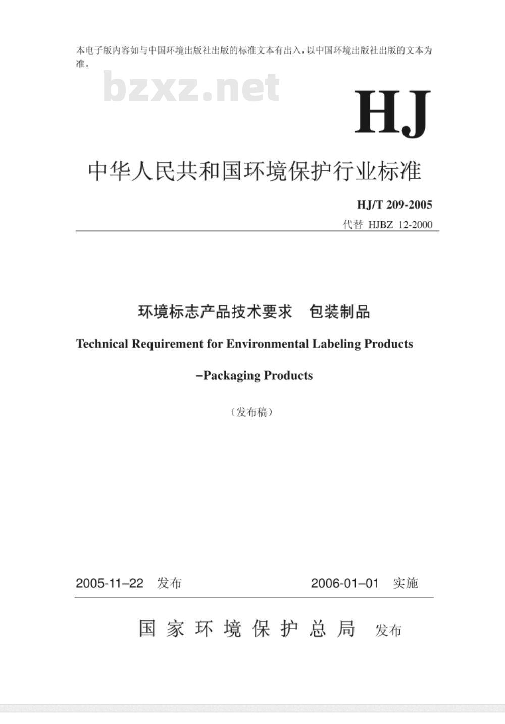 - HTJ 209-2005 环境标志产品技术要求 包装制品