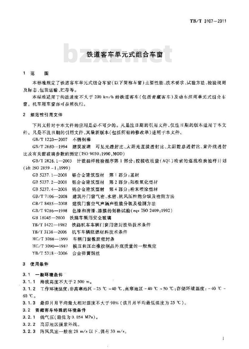 - TB/T 3107-2011 铁道客车单元式组合车窗