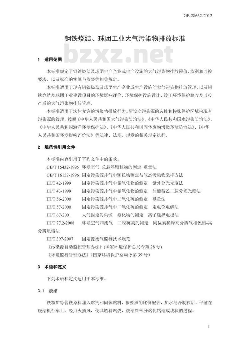 - GB 28662-2012 钢铁烧结、球团工业大气污染物排放标准