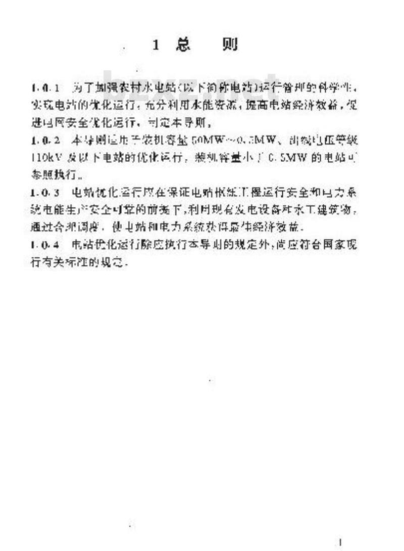 1..1了强农村水站以下简电站运行管的料学坐实统电式的觉化运行:充分利时水能资源,堤高电站经注效益,提进以安全优化运行,司定本寻则,1. 0.2本导则险于装机容坐5nMW0.MW、以载心压管级I10k发以下电站的优化运行,装划穿量小!C.5MW的电站u照按行.