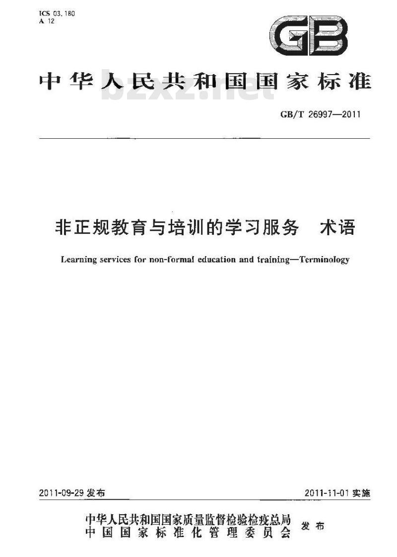 - GB/T 26997-2011 非正规教育与培训的学习服务
