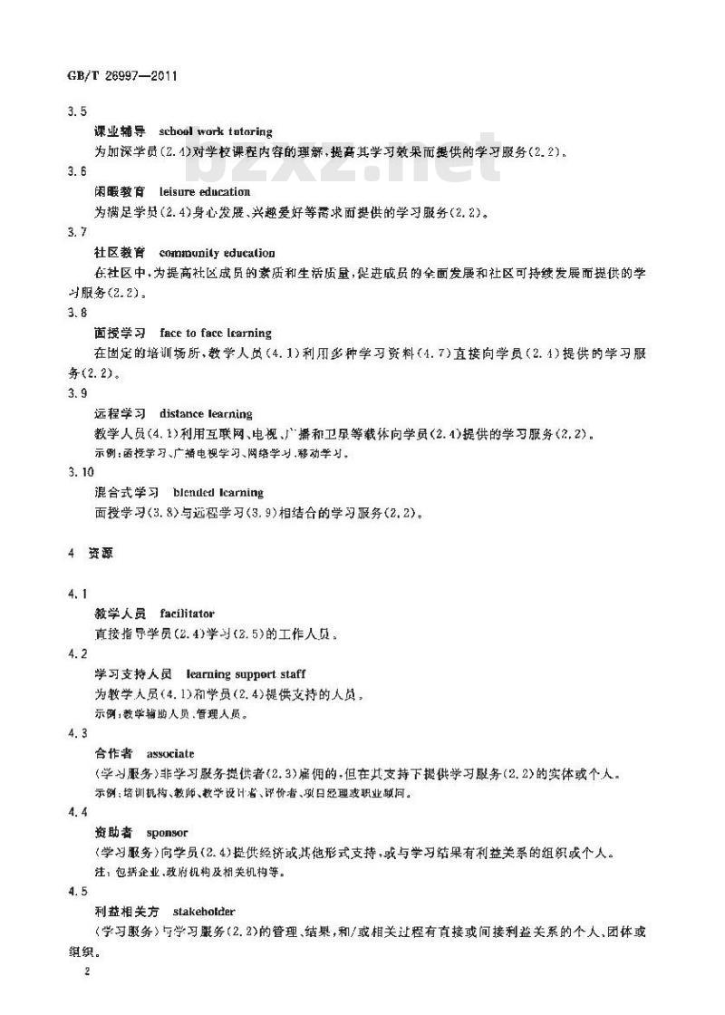非正规教育与培训的学习服务术语GB/T 269972011