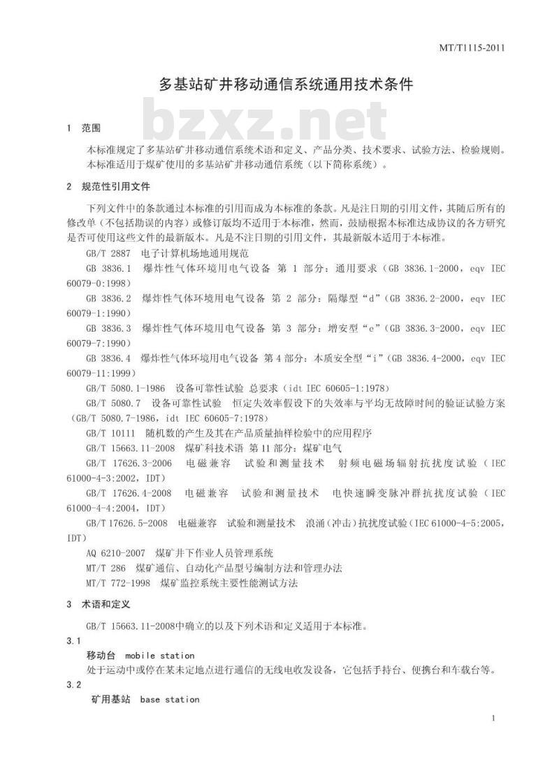 - MT/T 1115-2011 多基站矿井移动通信系统通用技术条件