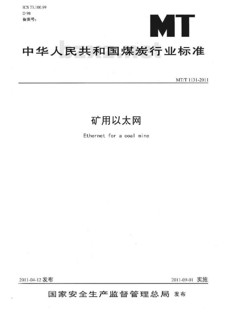 下列术语和定义适用于本标准。3.1.1矿用以太网ethernetforacoalmine用于煤矿的工业以太网。