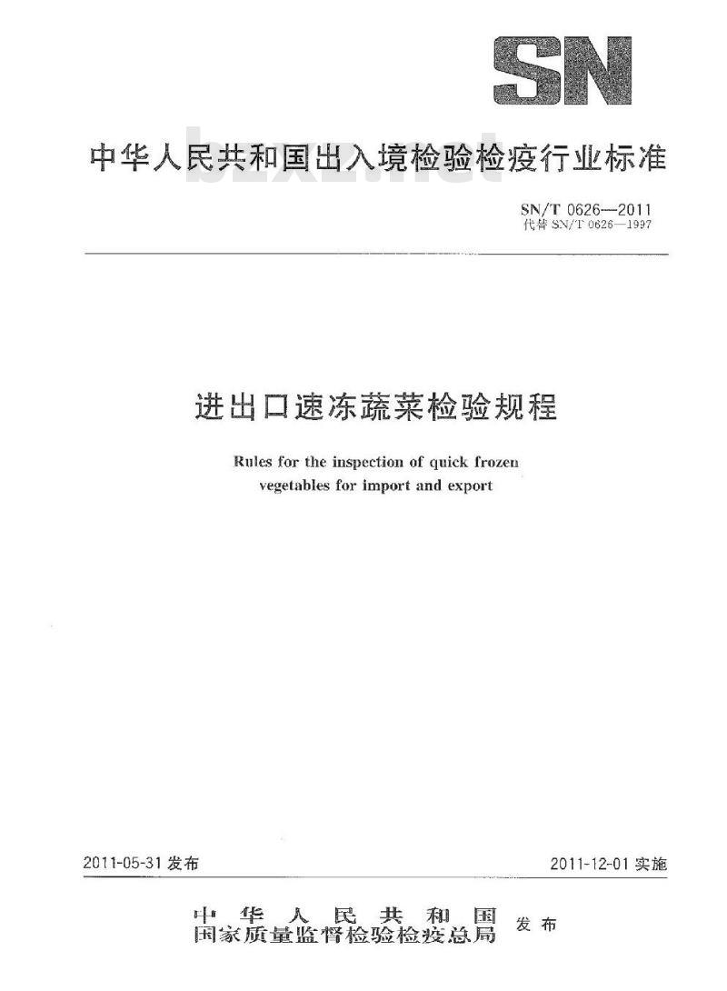 - SN/T 0626-2011 进出口速冻蔬菜检验规程