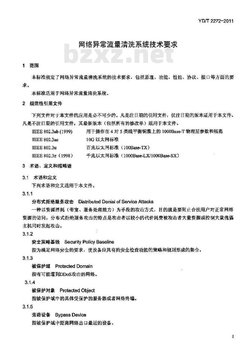 - YD/T 2272-2011 网络异常流量清洗系统技术要求