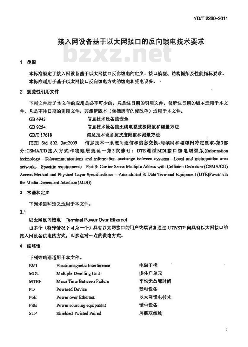 - YD/T 2280-2011 接入网设备基于以太网接口的反向馈电技术要求