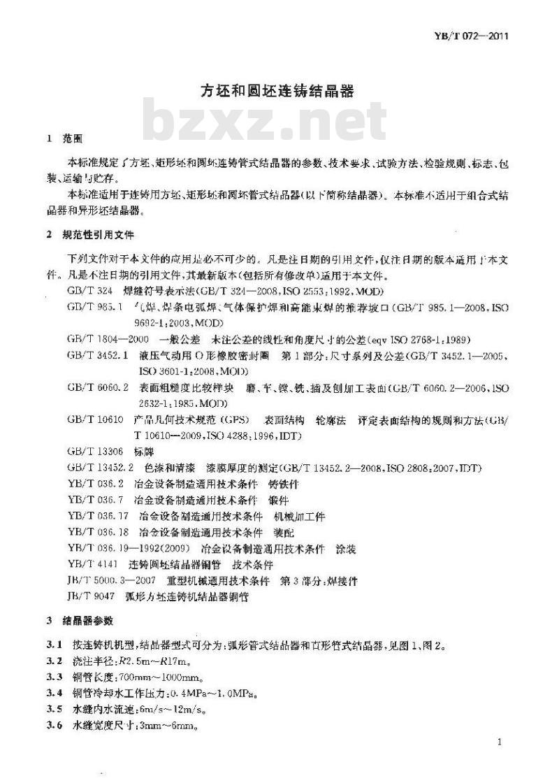 - YB/T 072-2011 方坯和圆坯连铸结晶器