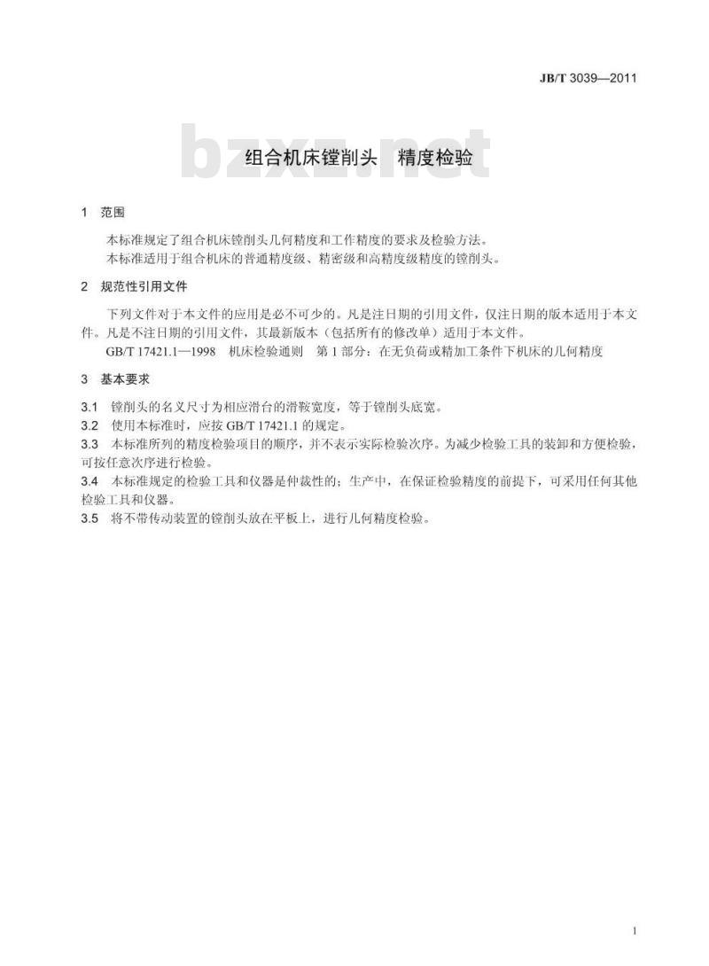 - JB/T 3039-2011 组合机床镗削头 精度检验