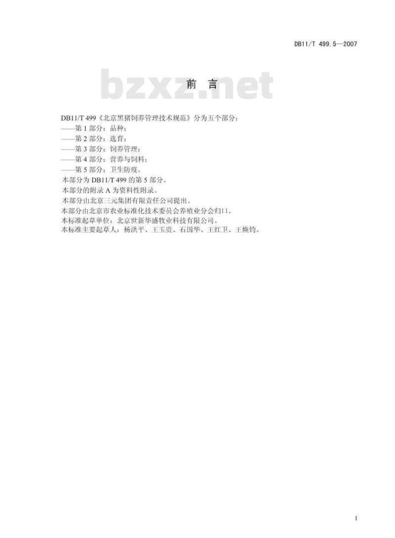 本部分由北京三元集团有限责任公司提出。本部分由北京市农业标准化技术委员会养殖业分会归口。本标准起草单位:北京世新华盛牧业科技有限公司本标准主要起草人:杨洪平、王玉贵、石国华、王红卫、王焕钧DB11/T499.5—2007