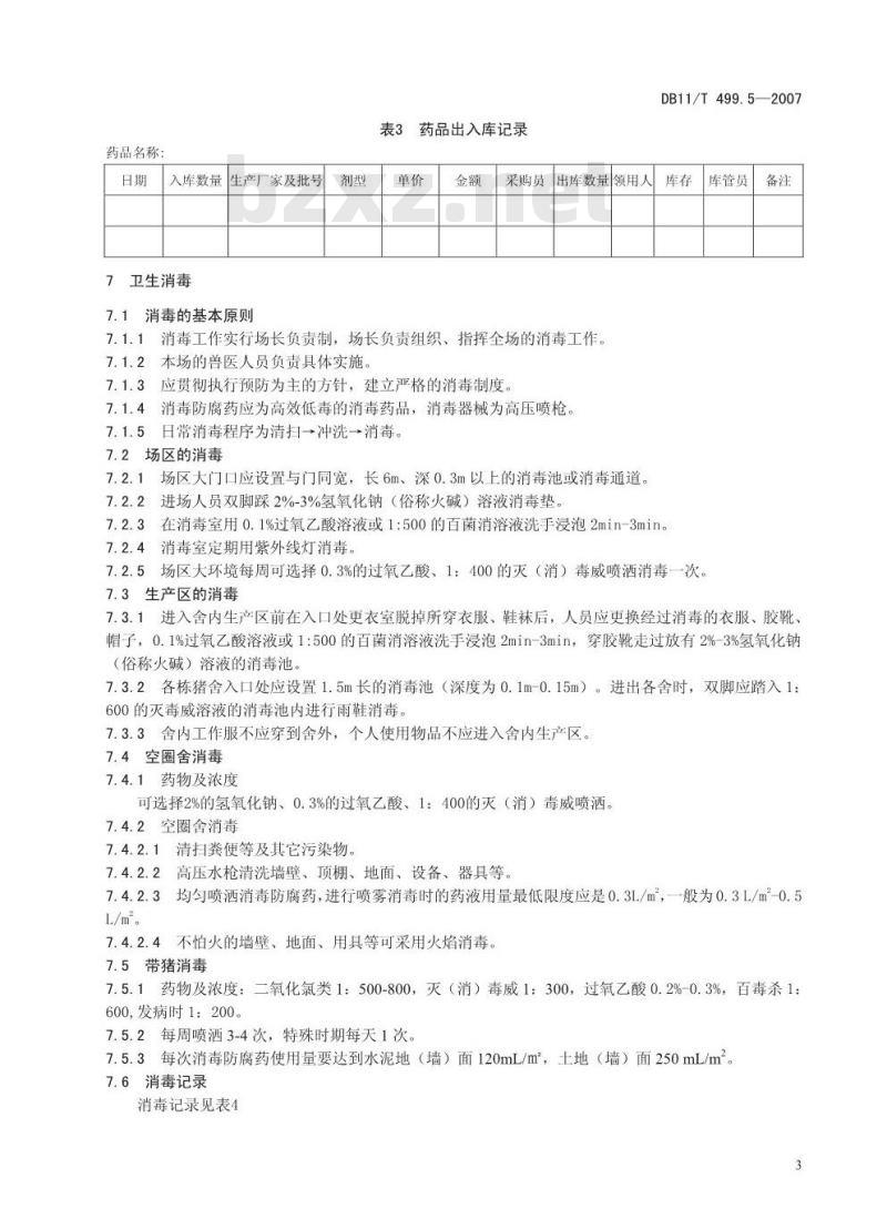 7.2.1场区大门口应设置与门同宽,长6m、深0.3m以上的消毒池或消毒通道。7.2.2进场人员双脚踩2%-3%氢氧化钠(俗称火碱)溶液消毒垫。DB11/T499.5—2007