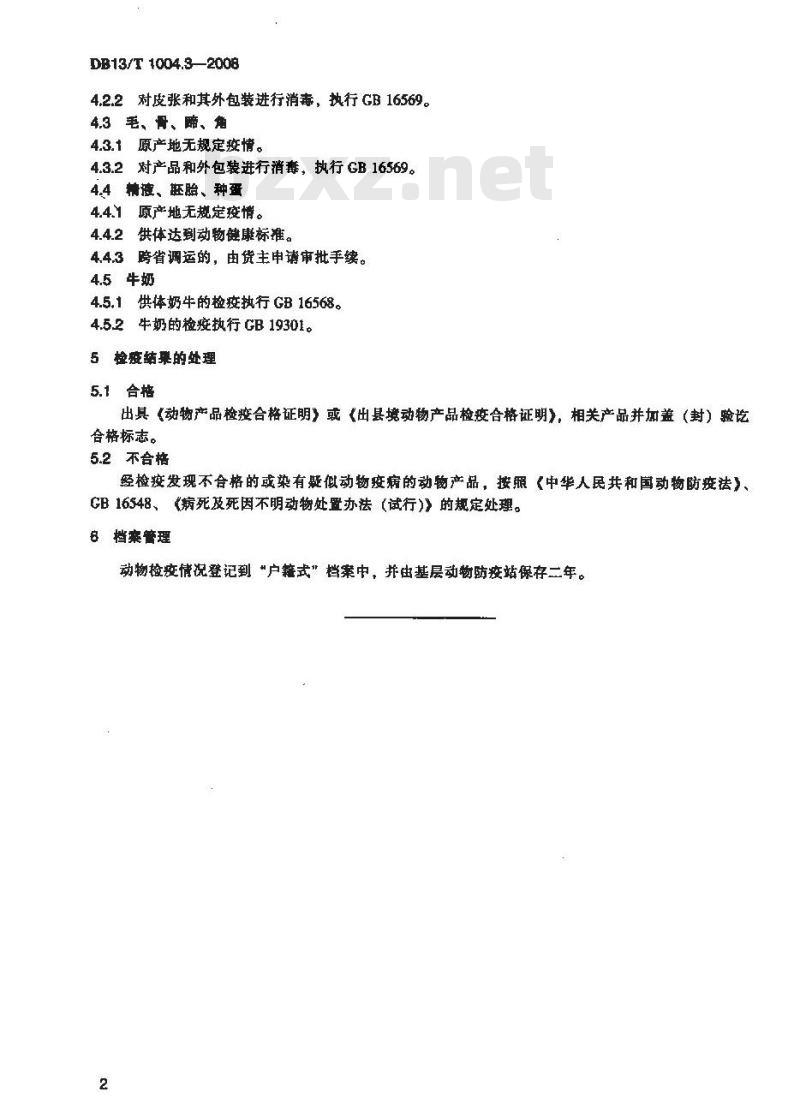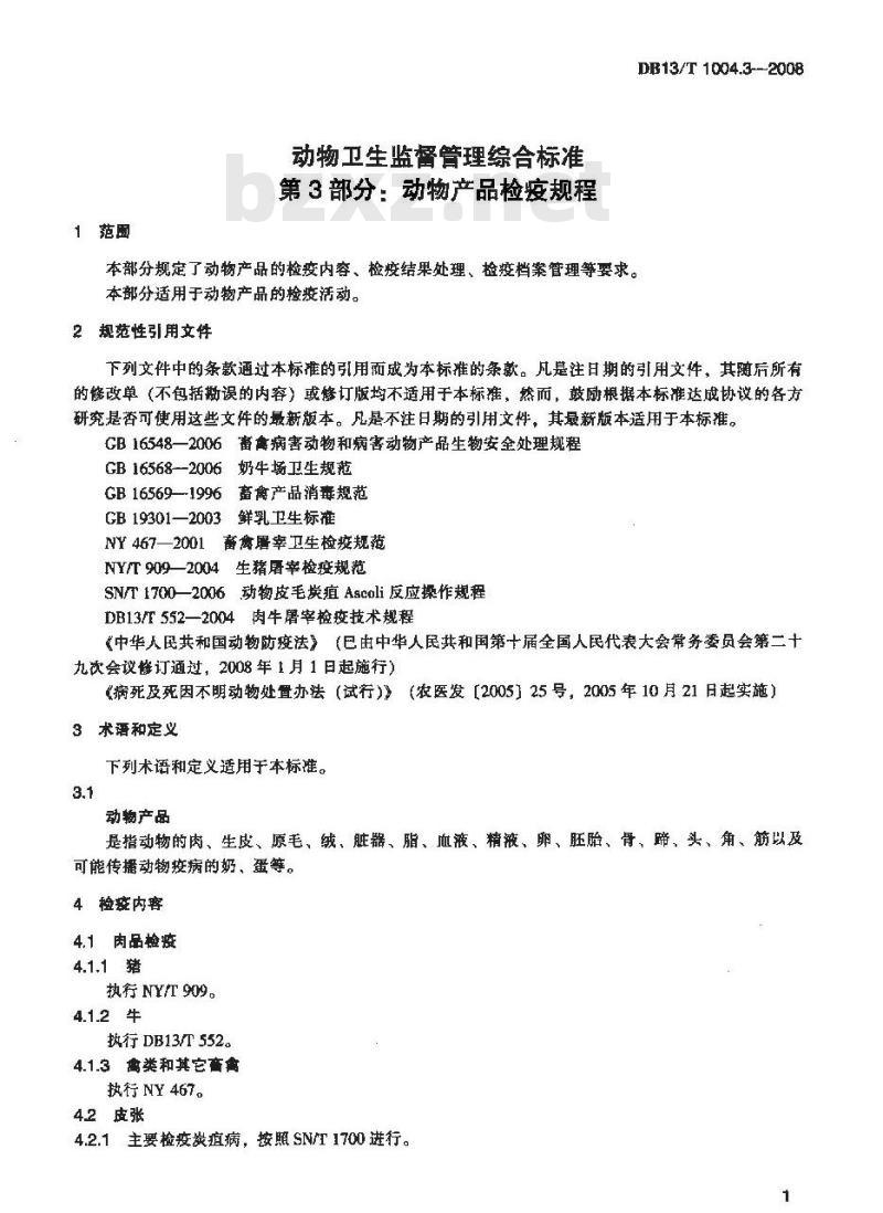 - DB13/T 1004.3-2008 动物卫生监督管理综合标准 第3部分 动物产品检疫规程
