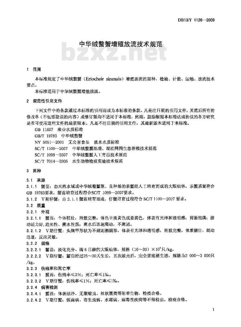 - DB13/T 1126-2009 中华绒鳌蟹增殖放流技术规范