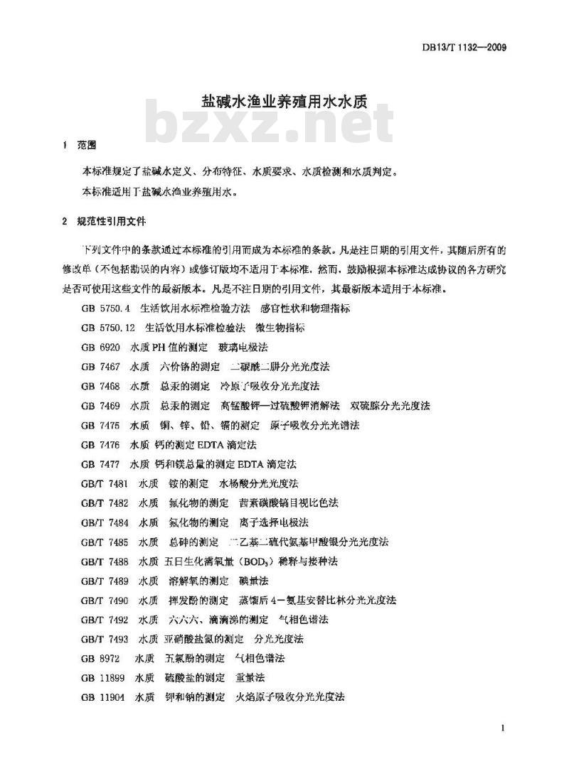 本标准规定了盐碱水定义、分布特征、水质要求、水质检测和水质判定。本标准适用丁盐碱水渔业养殖用水。2规范性引用文件