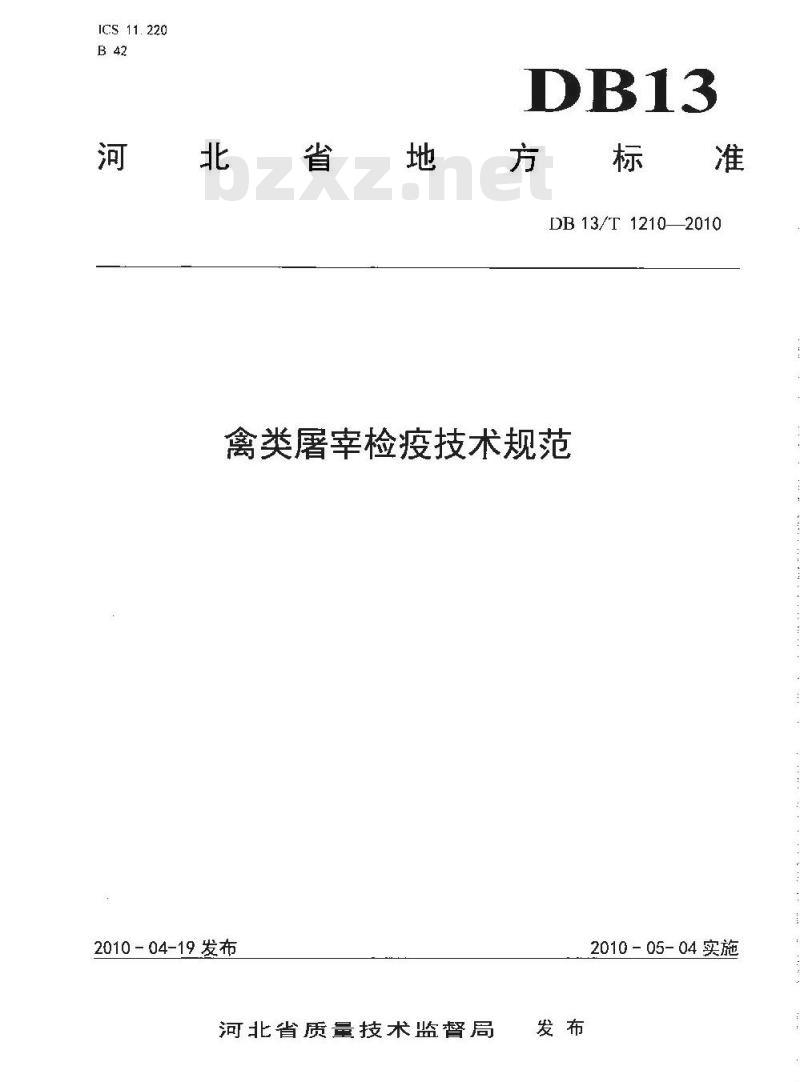 - DB13/T 1210-2010 禽类屠宰检疫技术规范