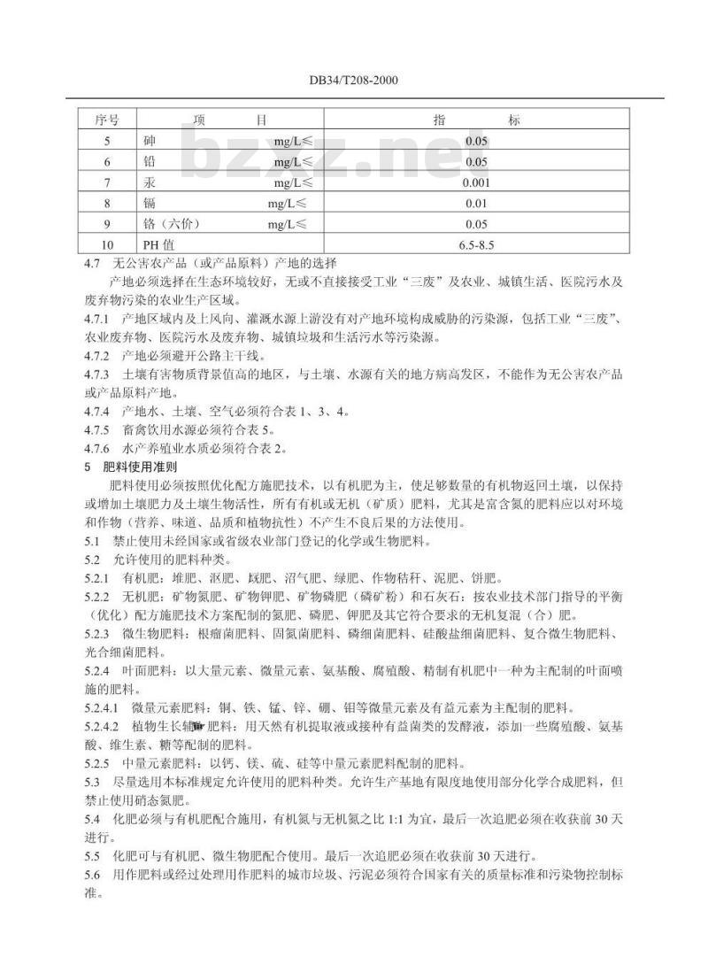 4.7.4产地水、土壤、空气必须符合表1、3、4。4.7.5畜禽饮用水源必须符合表5。4.7.6水产养殖业水质必须符合表2。5肥料使用准则