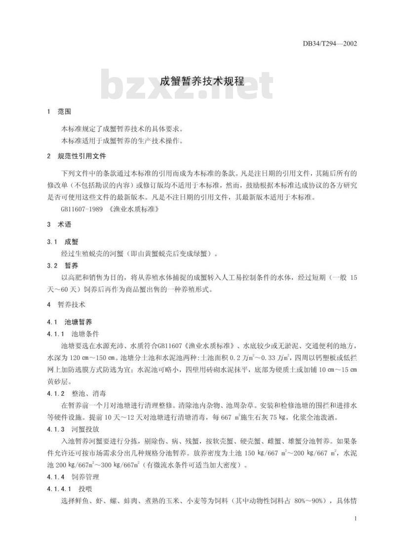 - DB34/T 294-2002 成蟹暂养技术规程