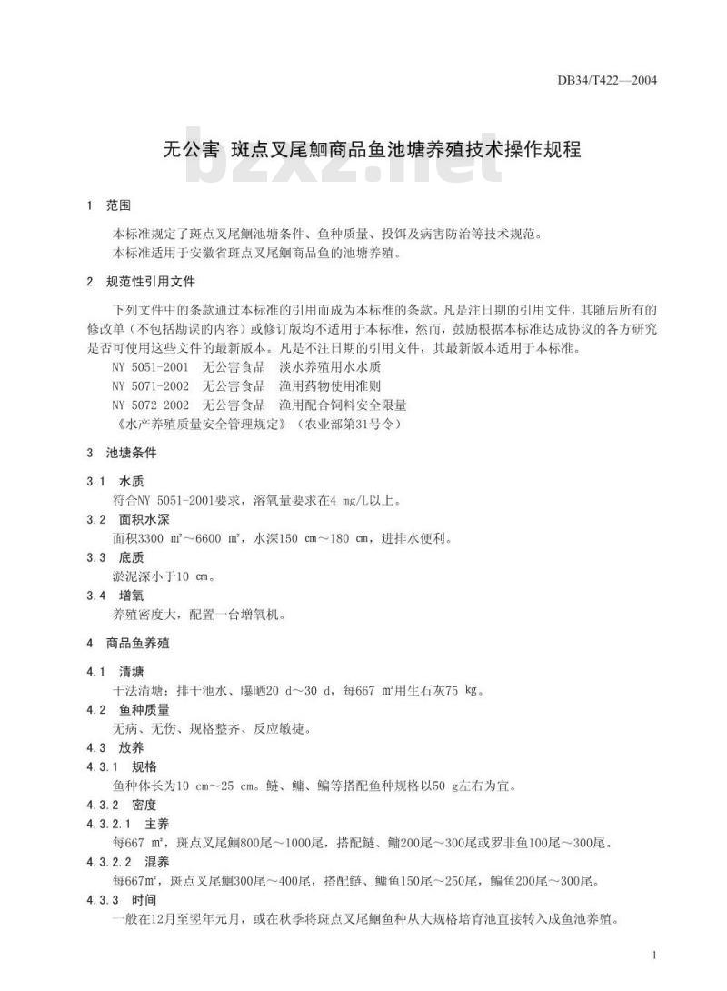 - DB34/T 422-2004 无公害斑点叉尾鮰商品鱼池塘养殖技术操作规程