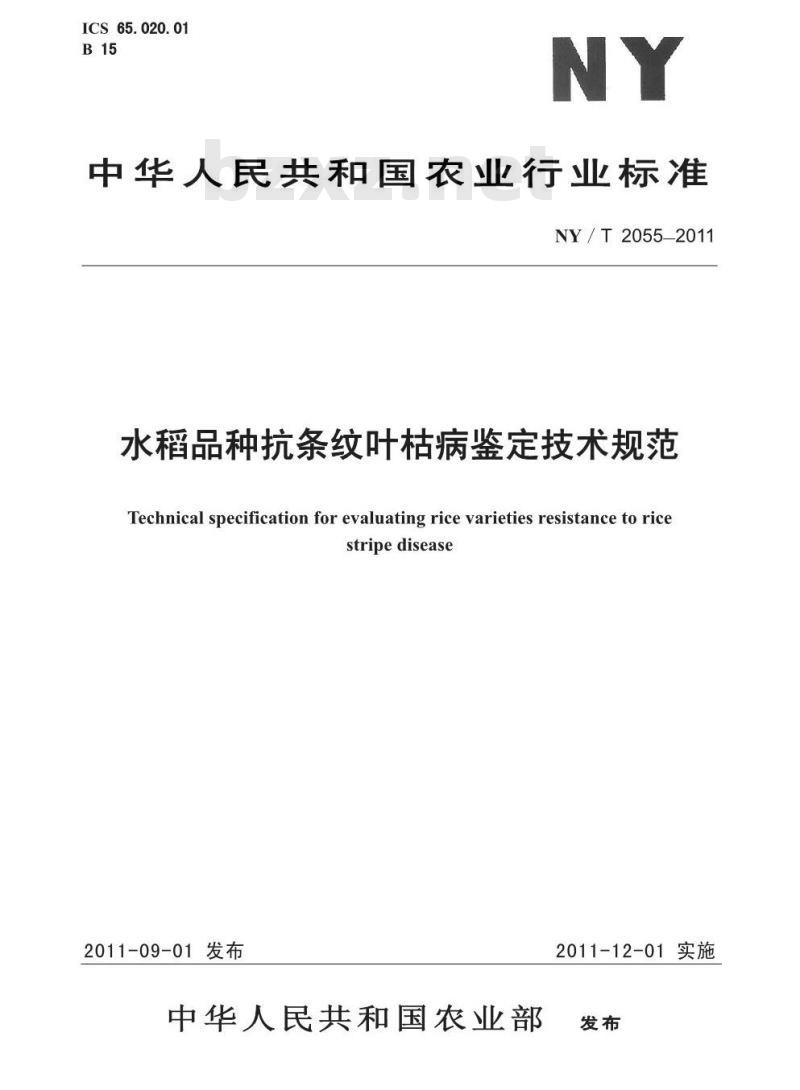 - NY/T 2055-2011 水稻品种抗条纹叶枯病鉴定技术规范
