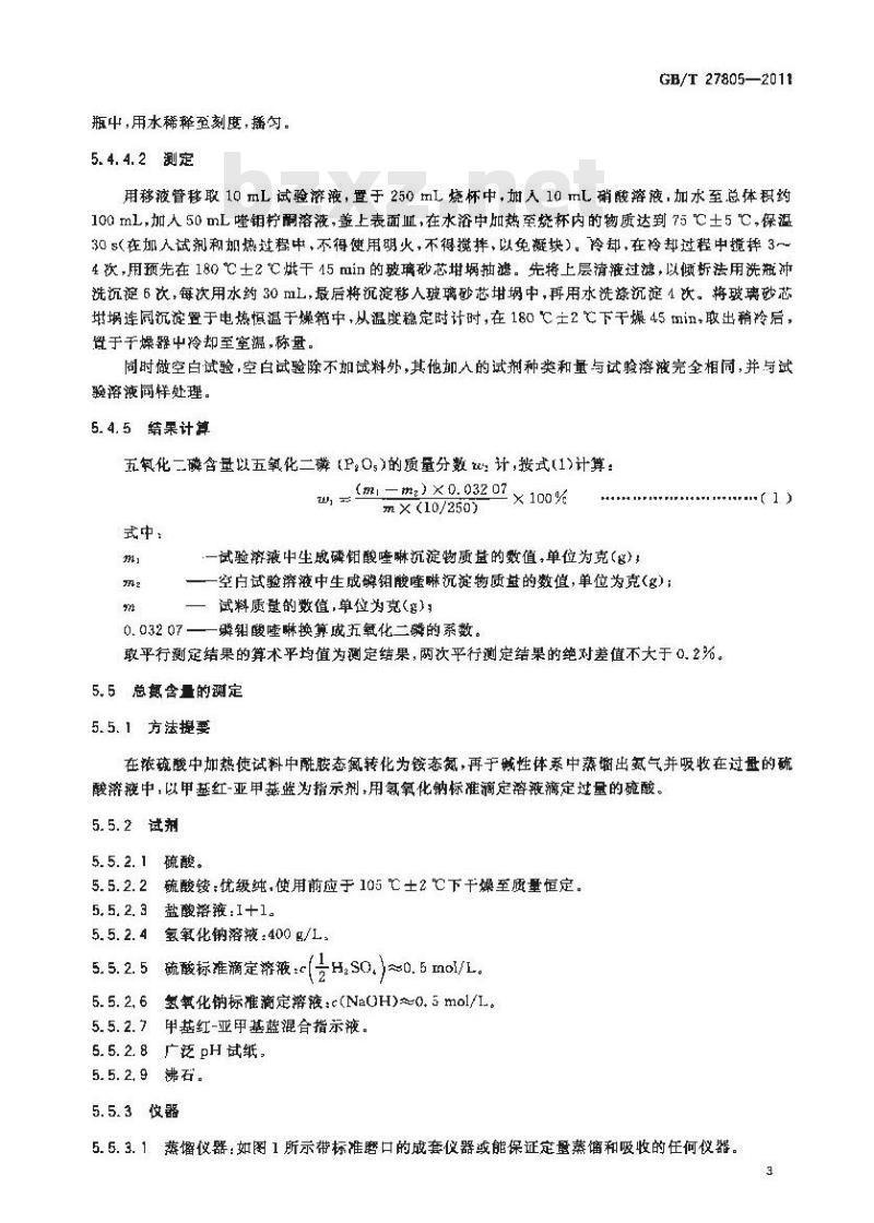 一试验溶液中生成磷铝酸唑啉沉淀物质益的数值单位为克(g)一空白试验辫液中生成磷钼唾琳沉淀物质盘的数值,单位为克(g):试料质登的数值,单位为克()0.03207一一瞬酸喹嘛换算成折氧化二磷的系数。取平行测定结果的算术平均值为测定结果,两次平行测定结果的绝对差值不大于0.2%。5.5总如含量的测定