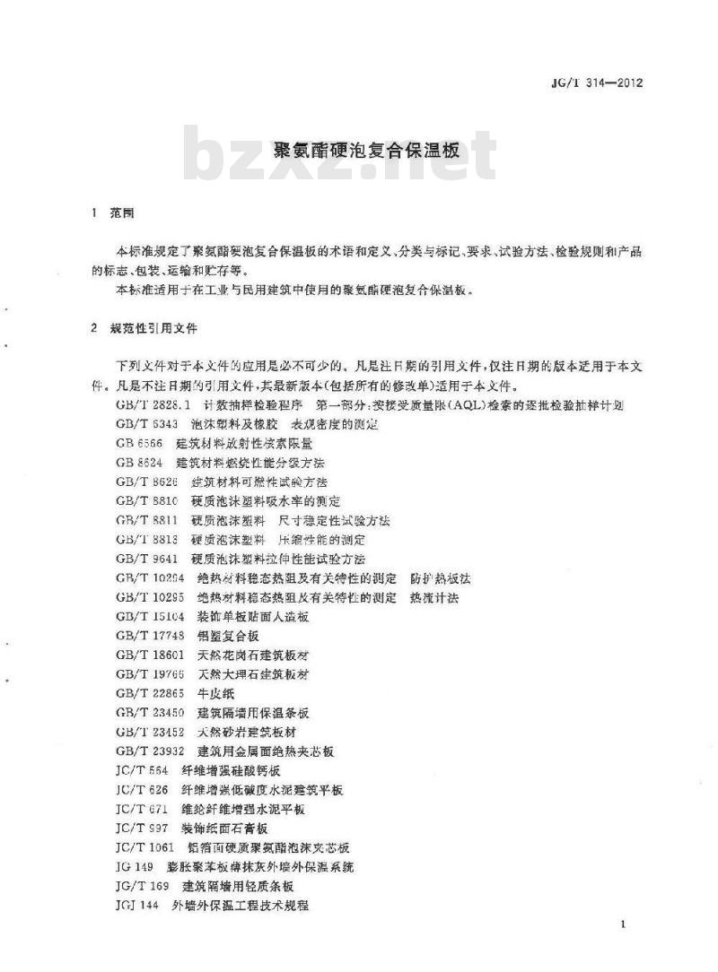 - JG/T 314-2012 聚氨醋硬泡复合保温板