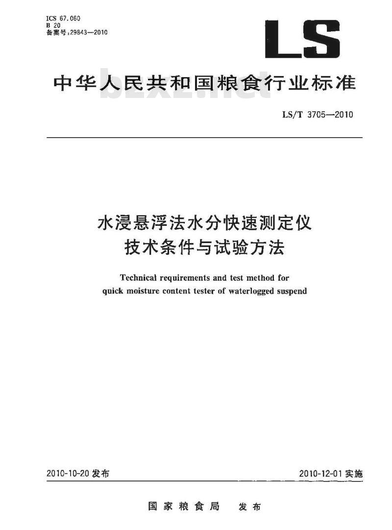 - LS/T 3705-2010 水浸悬浮法水分快速测定仪技术条件与试验方法