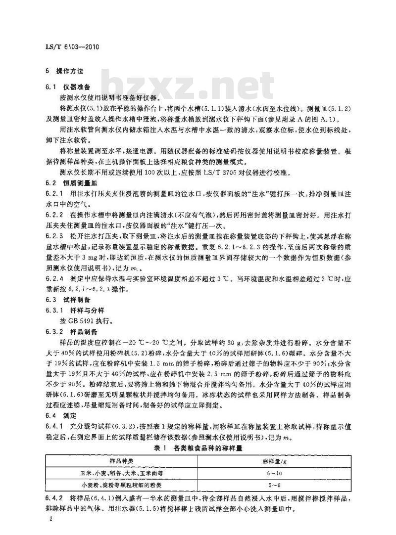 - LS/T 6103-2010 粮油检验 粮食水分测定 水浸悬浮法