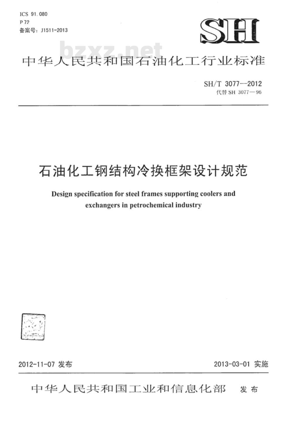 - SH/T 3077-2012 石油化工钢结构冷换框架设计规范