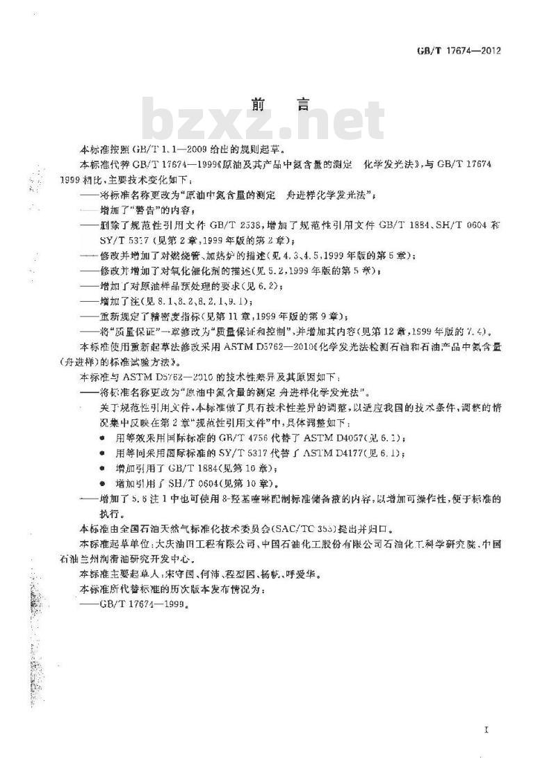 本标推代替GB/T17674—1999&原油及其产品中氮含量的测定化学发光法》,与GB/T176741999比,主要技术变化如下: