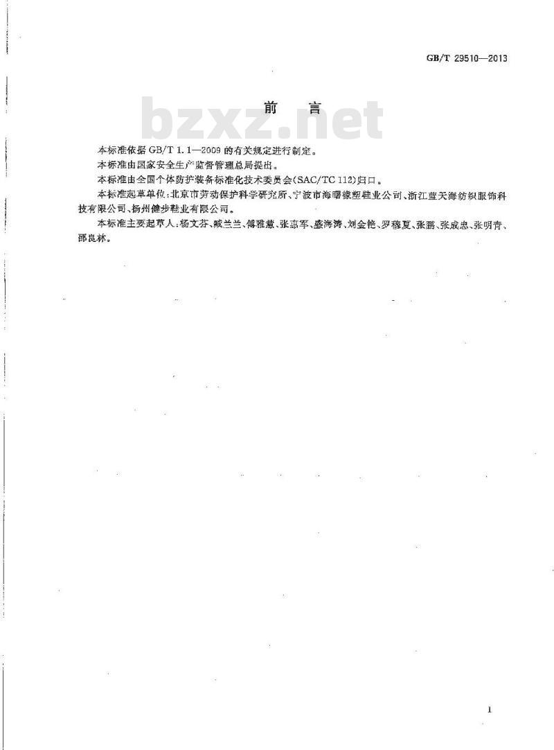 本标准依据GB/T1.1—2009的有关规定进行制定。本标准出国家安全生产监督管理总局提出。本标准由全国个体防护装备标推化技术委员会(SAC/TC I12)归口。GB/T29510—2013