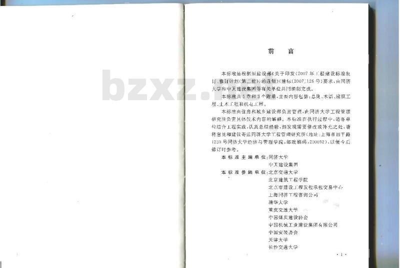 本标准是根挪原建设部《关于印发<20017年1程建设标准制订,修计计划(第批))的通知》(建标[2007:126号)要求,出同济大学和中天建设集团等有关单位共同绵制完成。本标准其5章和3个附录,主安内容包括:总则,术证、建筑工盈、土木程和机电1程。