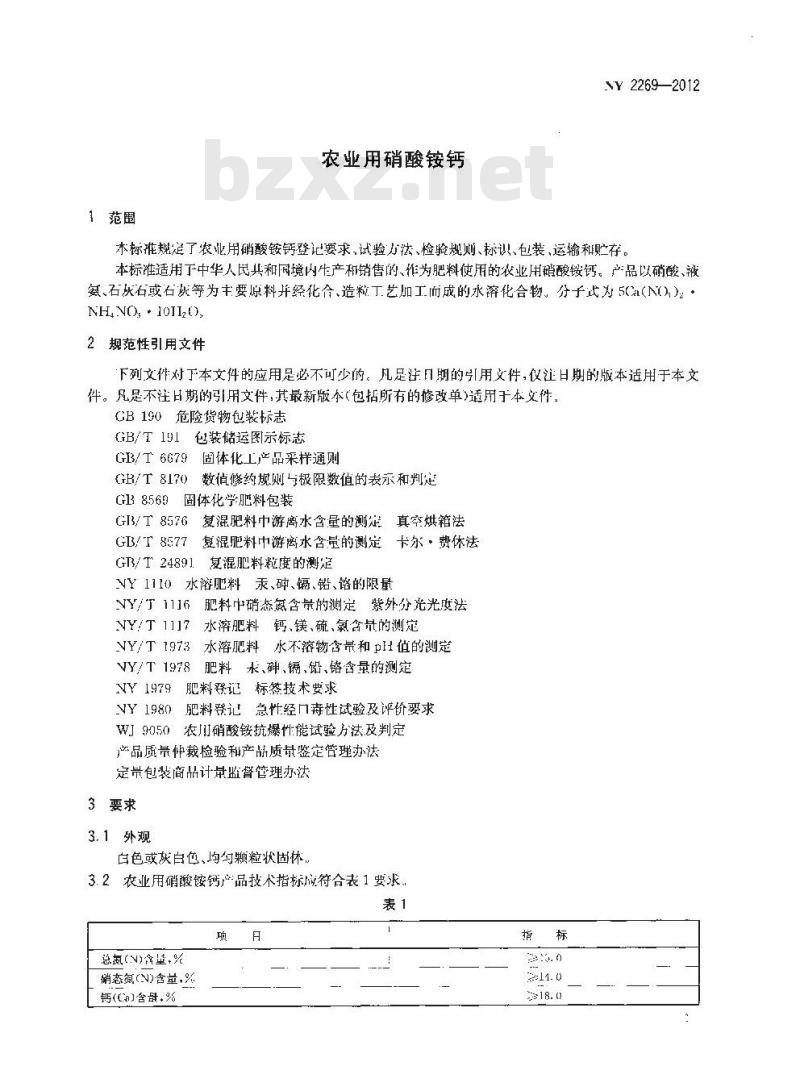 本标推规定了农业用硝酸铵钙登记要求,试验方法、检验规则、标识、包装、运输和贮存。本标准适用下中华人民共和国境内生产和销售的、作为肥料使用的农业用硝酸铵钙。产品以硝酸、液氨、石灰石或石灰等为主要原料并经化合、造粒丁艺加工而成的水溶化合物、分子式为5Ca(N)):NHNO,10O,