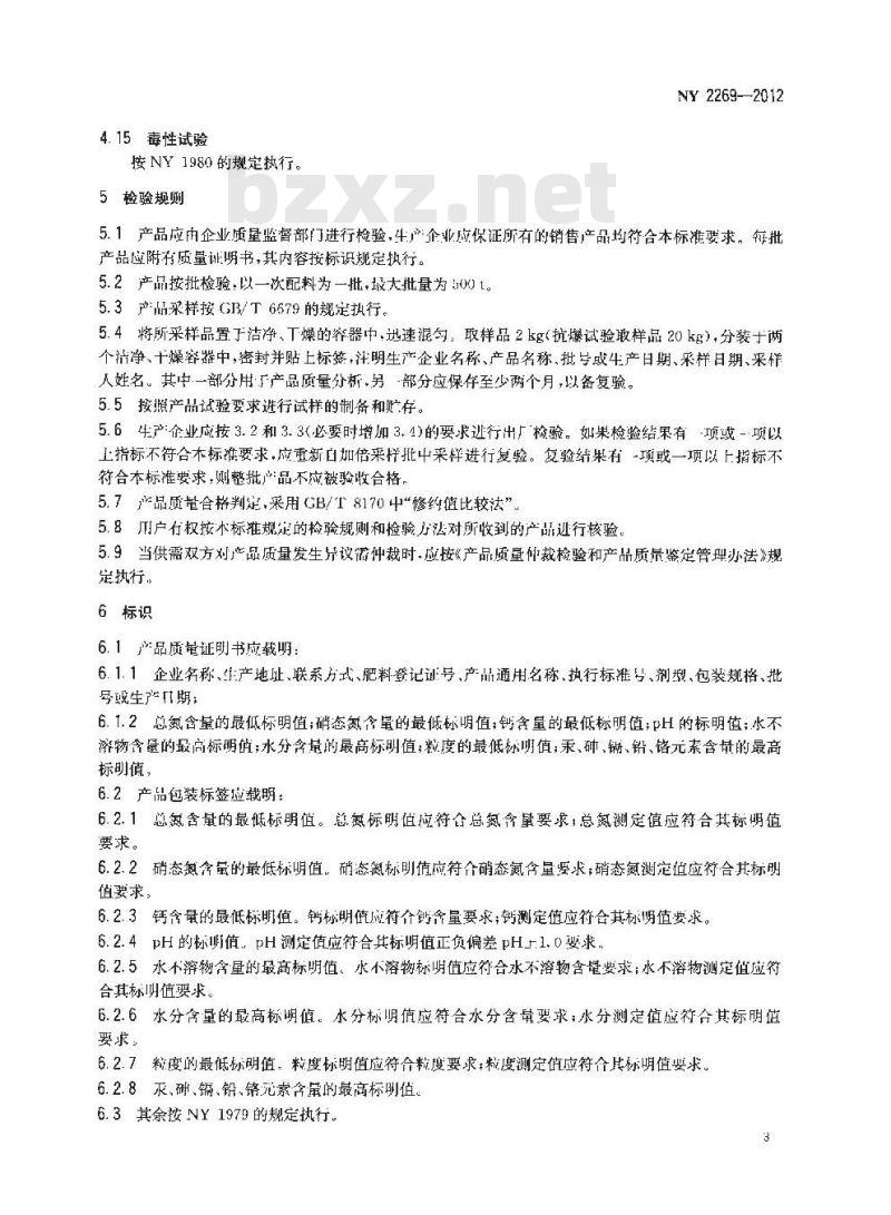 6.1.2总氮含量的最低标明值硝态氮个量的最低标明值;钙含量的最低标明值;PH的标明值;水不溶物含量的最高标明值;水分含量的最高标明值;粒度的最低标明值;乘、、、铅、铬元素含量的最高标明值,