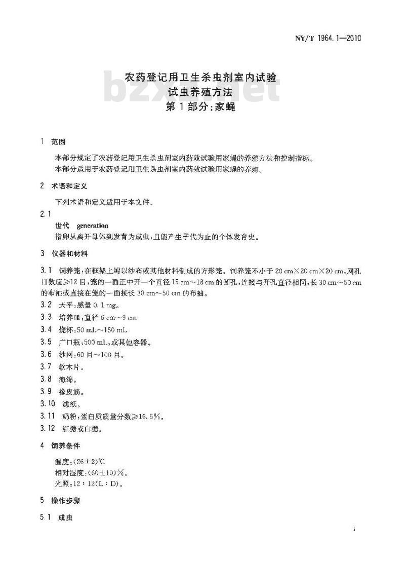本部分规定了农药登记用卫生杀虫剂室内药效试验用家蝇的养殖方泌和控制指标。本部分适用于农药登记卫生杂虫剂室内药效试验川家蝇的养殖。2术语和定义