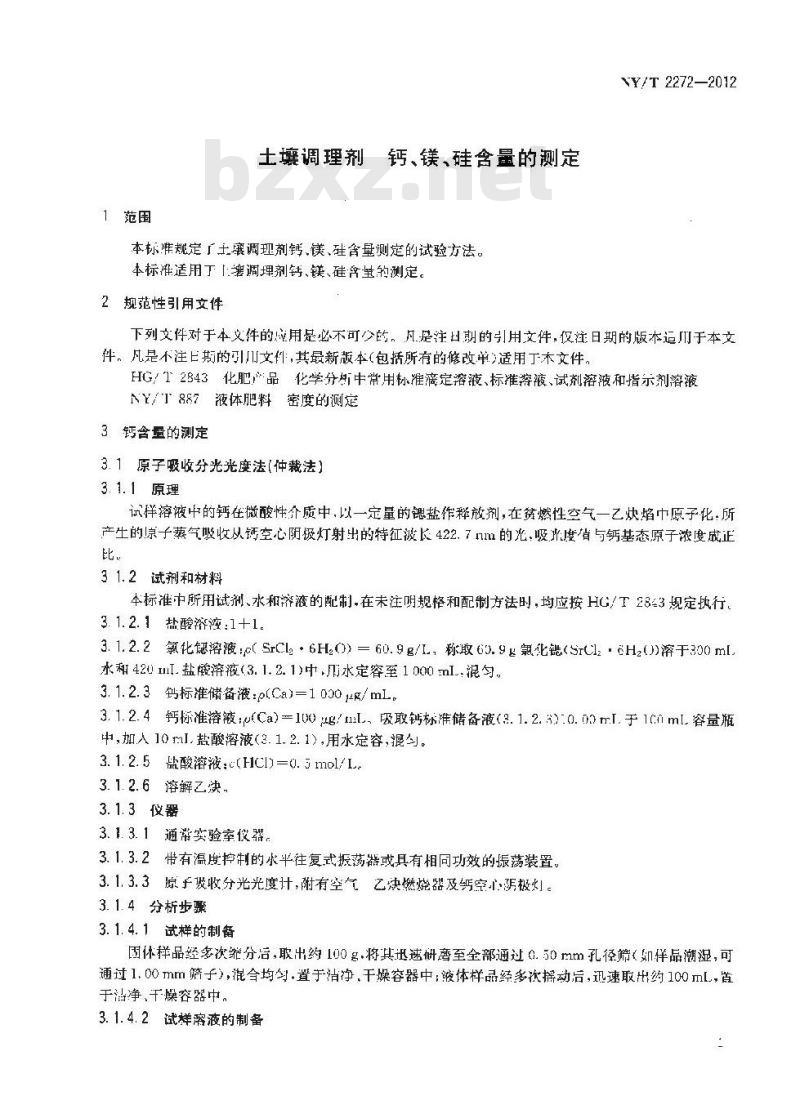 - NY/T 2272-2012 土壤调理剂 钙、镁、硅含量的测定
